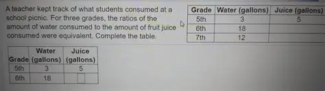 The Ratios of Water and Fruit Juice Consumption